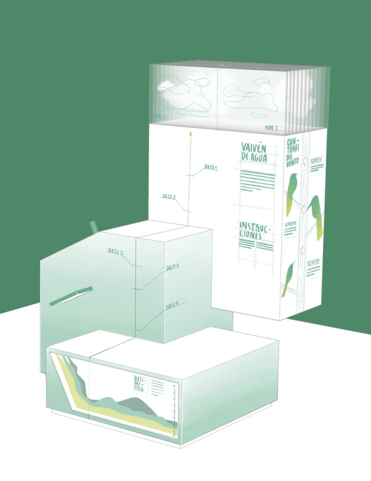 El diseño industrial fue el protagonista ante la estructuración de dos módulos en forma de prisma, con el objetivo de percibirlo bajo la referencia de un micro museo, el cual cuenta con varias experiencias interactivas en su componente.